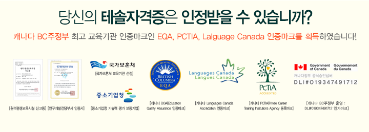 - 사실과 다릅니다. 단기테솔에 온라인과정은 오프라인과 동일한 인정을 받으면서 160시간에 오프라인인정서가 발급이 되며 캐나다 BC주정부에 EQA, PCTIA에 대한 인허가와 Language Canada 인증마크와 국내 서울 남부교육청에서 평생교육시설로 인허가를 받았습니다.