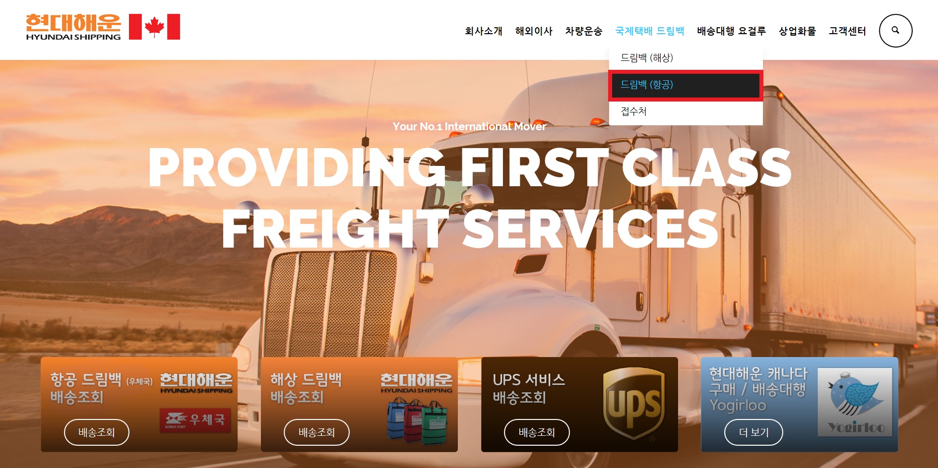 ① 우선, 현대해운 홈페이지로 들어갑니다 http://vanhyundai.ca/ 상단에 [국제택배 드림백-(항공)] 을 클릭합니다