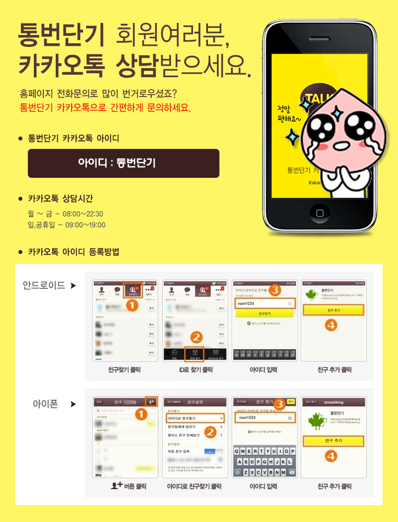 전화문의가 어려우시면 통번단기 카카오톡을 활용해보세요^^